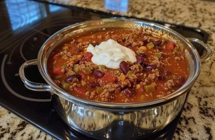 The image you’ve shared appears to depict a hearty pot of chili, a beloved dish known for its rich, warming flavors. Chili is a versatile and satisfying meal that has become a staple in many households, especially during the colder months. Let’s explore the essence of this dish, its origins, and a simple recipe to recreate this delicious comfort food at home.