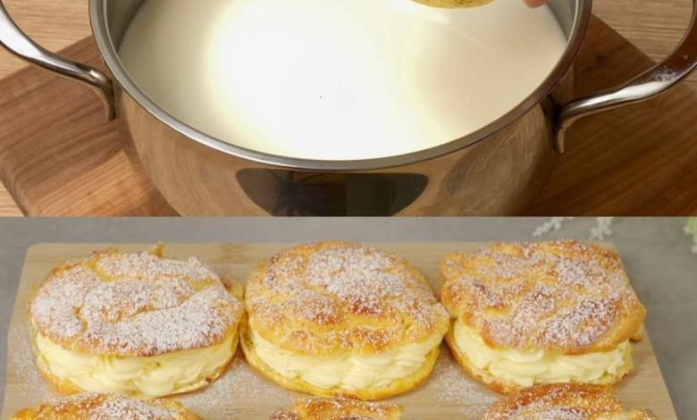 - Spoon or pipe the dough onto a baking sheet in small rounds. Bake for 20-25 minutes until golden and puffed. Let cool.