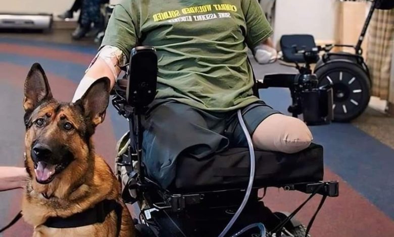 The photograph captures a powerful moment: a man seated in a wheelchair, with his trusted service dog by his side. His bright smile radiates positivity and determination. His t-shirt, emblazoned with the words “Combat Wounded Soldier,” tells a story of bravery and sacrifice. This individual has faced significant physical challenges, evident from his prosthetic limbs, yet his spirit remains unbroken.