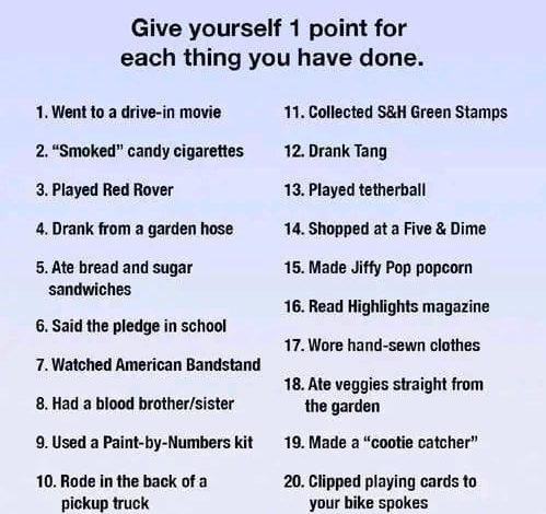 Conclusion: The activities listed in the image above remind us of a different pace of life, one filled with simple pleasures and cherished routines. Each item on the list is a symbol of an era when childhood was all about exploring, creating, and bonding with family and friends. These memories hold a special place in our hearts, serving as reminders of the joy in simplicity. In a fast-paced digital world, reflecting on these moments gives us a renewed appreciation for the experiences that shaped us and the importance of finding joy in life’s small, everyday moments.
