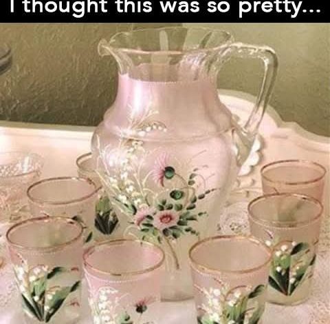 A Vintage Beauty: The Allure of a Hand-Painted Glass Pitcher and Tumblers