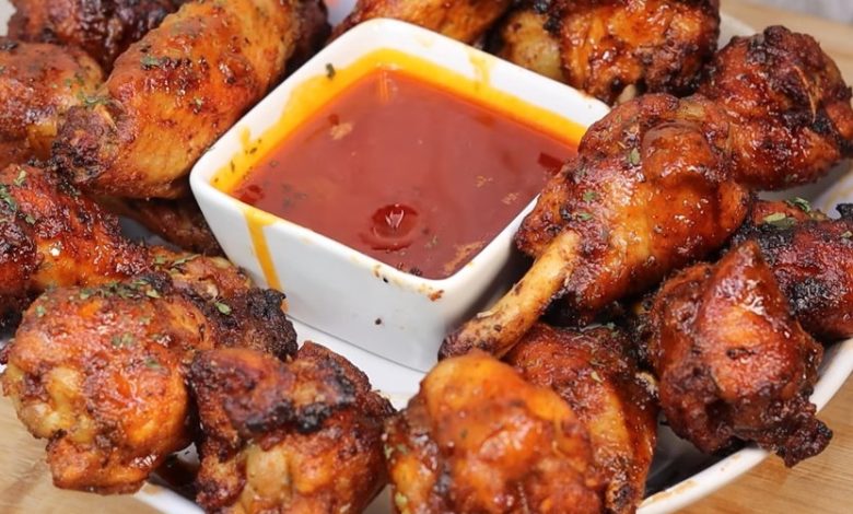 Bake the wings for 25-30 minutes, turning them halfway through cooking, until golden brown. Depending on the size of your movie you may need to do this in parts. Prepare a delicious pepper-garlic sauce: Prepare the sauce while the wings are cooking. In a small saucepan, combine sweet chili sauce, soy sauce, honey, minced garlic, rice vinegar, and sriracha (if using).