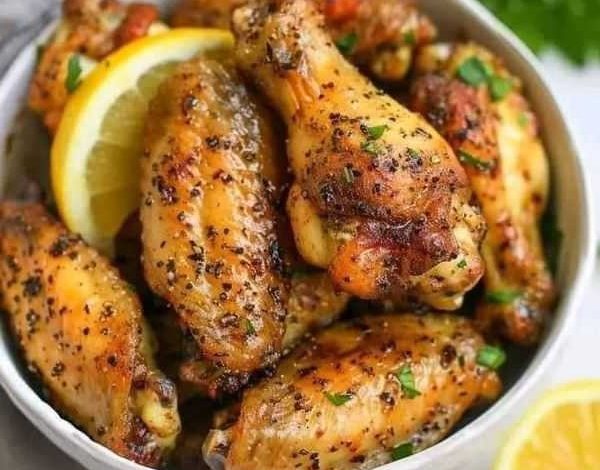 - Transfer the buttery lemon pepper chicken wings to a serving platter.