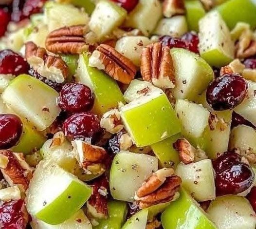 - In a large bowl, combine chopped apples, cranberries, and pecans.