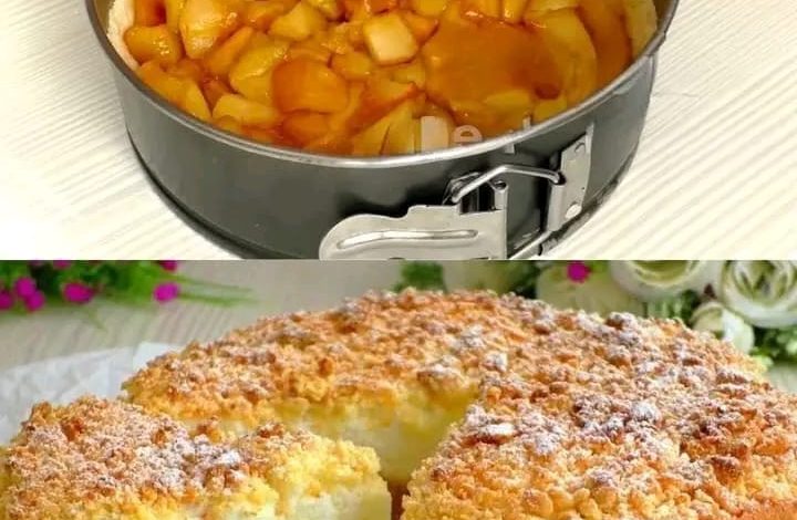 - Pour the cream mixture over the apple filling and spread it evenly.