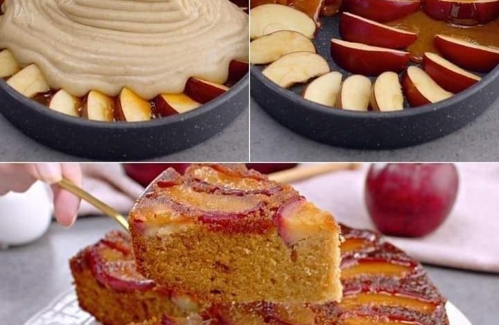 - In another pan, cook the butter for 6 minutes over medium heat, mix with honey, buttermilk, eggs, sugar and vanilla extract, add flour, baking powder, cinnamon and nutmeg and salt. Pour over apples and caramel.3. Bake at 170°C (340°F) for 1 hour. Let cool for 15 minutes and serve.