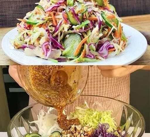 Conclusion: This Asian-Inspired Crunchy Salad is a feast for the senses with its colorful presentation and dynamic flavors. The combination of crisp vegetables, nutty almonds, and a robust, flavorful dressing makes it a standout dish that can be served at gatherings or enjoyed as a wholesome meal on its own. Whether you’re looking to impress guests or simply make a healthy meal for yourself, this salad is sure to delight.