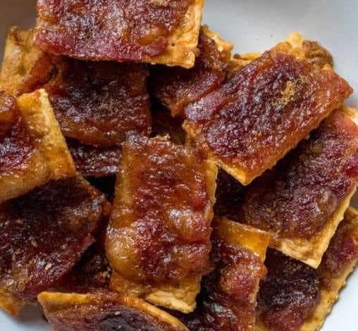 - Return bacon to the skillet. Reduce heat to low and simmer for about 45 minutes to 1 hour, until thickened and syrupy.