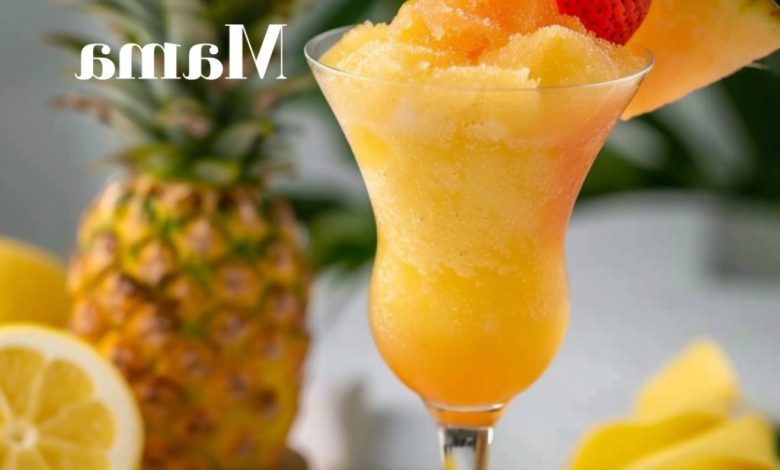 Blend remaining ingredients in a blender: orange juice, pineapple juice, orange juice, coconut milk, lemon juice, and ice.