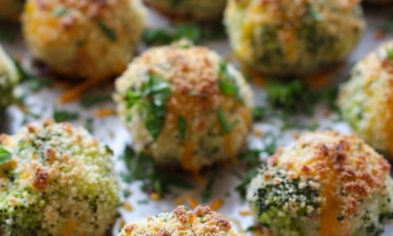 In a large bowl, combine broccoli, breadcrumbs, cheddar cheese, Parmesan, eggs, flour, garlic powder and onion powder.Season with salt and pepper and mix well.