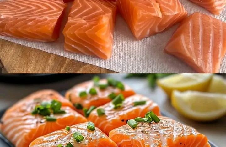 - Place the salmon fillets on a baking dish lined with parchment paper.