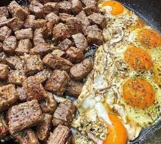 Rested steak: After cooking, let the steak rest for a few minutes and then add it to the pan with the sweet potato and garlic oil. This allows the juices to be better distributed, keeping the meat nice and fresh.