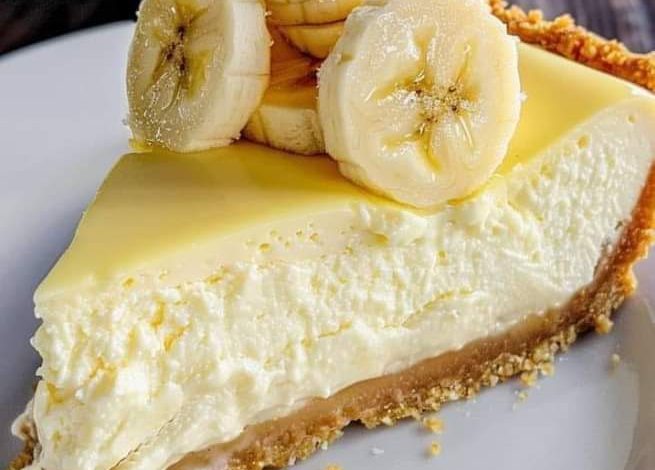 - Spread the banana cream topping evenly over the cooled cheesecake.