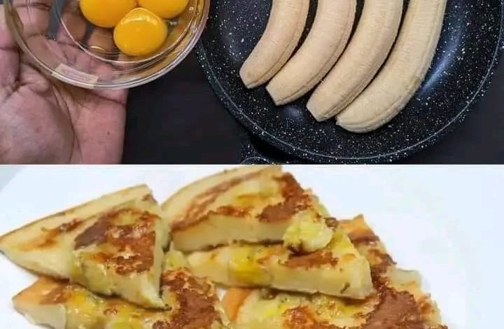 • Pour the banana and egg mixture into the pan, spreading it evenly.