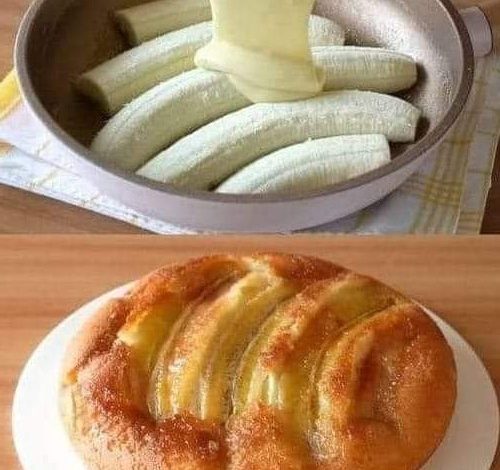 • Allow the cake to cool in the pan for about 10 minutes. Then, carefully invert the cake onto a serving plate. If any bananas stick to the pan, gently lift them out and place them back on the cake.