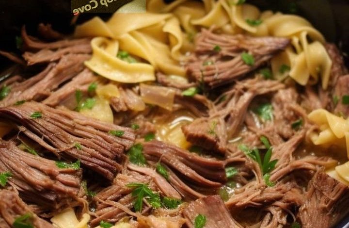 Shred and serve: Gently shred the cooked meat with two forks and place generously over the cooked noodles.