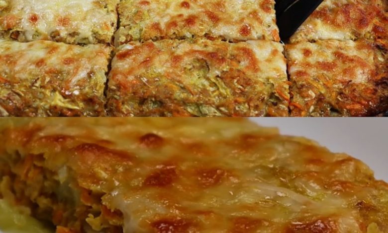 Prepare the bottom of a greased baking dish, divide half the cabbage-carrot mixture into a single layer.