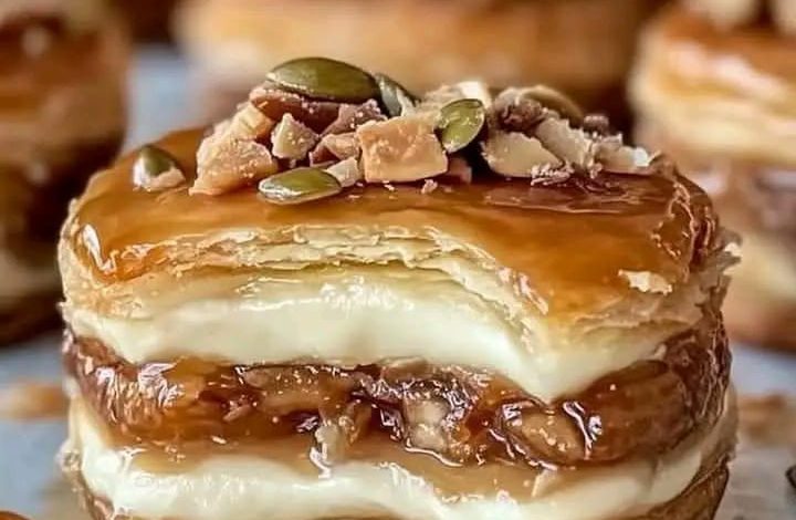 Conclusion: This caramelized puff pastry with cream filling is an irresistible dessert that will impress anyone who tastes it. With its light, flaky texture and rich, smooth cream filling, it’s a perfect combination of flavors and textures. You can also experiment with different toppings, such as fresh fruits or chocolate shavings, to make it even more personalized. Whether you serve it at a special gathering or as an everyday treat, this dessert is sure to be a hit!