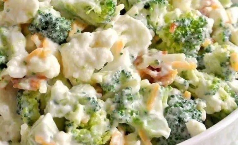 It consists of 1 head chopped broccoli and cauliflower, 1/2 pound cooked bacon and 1 cup shredded cheese.+ The sauce is: Salads aren’t just for the warm months, but when I’m craving winter vegetables, I replace my salads with heartier vegetables and ingredients with warm, smoky flavors, like roasted vegetables and smoked paprika. This Roasted Cauliflower Salad is actually a twist on one of my other favorites, the Mediterranean Farro Salad.