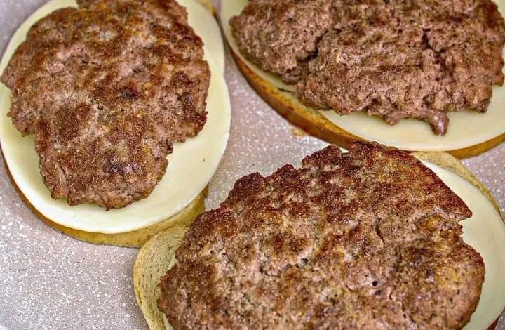 In a bowl, mix the ground beef with salt, pepper, garlic powder, onion powder, and smoked paprika. Form the mixture into 4 equal-sized patties, slightly larger than the bread slices since they will shrink while cooking.