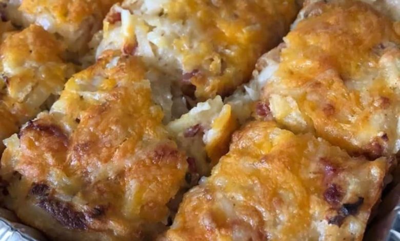 - In a large bowl, combine the thawed hash browns, shredded cheddar cheese, crumbled bacon, and chopped onion.