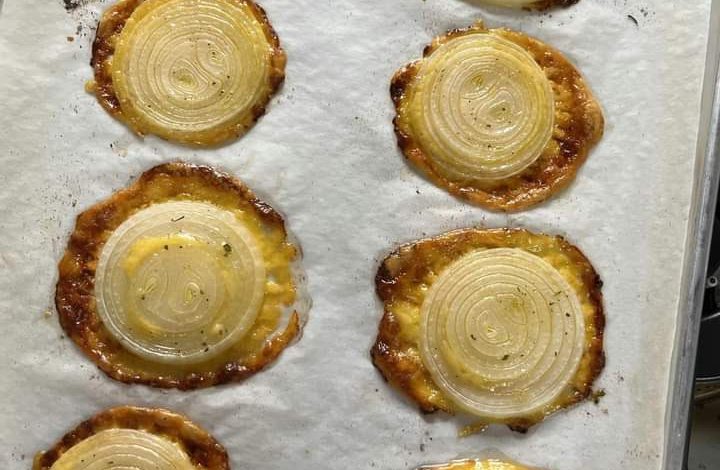 • Sprinkle a generous amount of the cheese mixture onto each onion ring, making sure to cover the surface evenly.