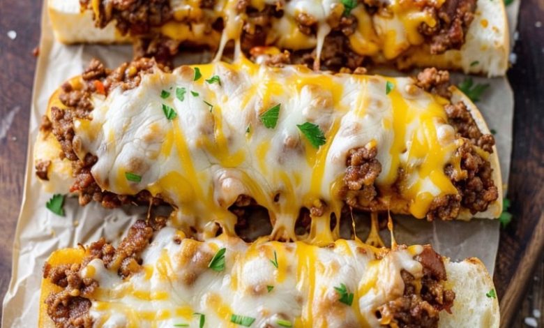 • Top and Serve: Place the top halves of the garlic bread on top of the cheesy Sloppy Joe filling. If desired, garnish with additional chopped parsley and a sprinkle of red pepper flakes.
