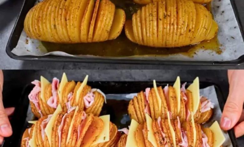 “Cheesy Ham-Stuffed Hasselback Potatoes Recipe: A Delicious Twist on a Classic”