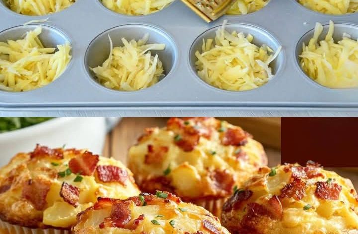 Savory muffins like these Cheesy Potato and Bacon Muffins are proof that baked goods don’t always have to be sweet to be delicious. Combining crispy potatoes, gooey cheese, and smoky bacon, this dish offers the perfect balance of flavors and textures. The images above illustrate how easy it is to prepare these muffins—from grating the potatoes to baking them to golden perfection. Whether served as a quick breakfast, a party snack, or a side dish, these muffins are sure to become a household favorite. Try this recipe today and enjoy a delicious, comforting treat with every bite!