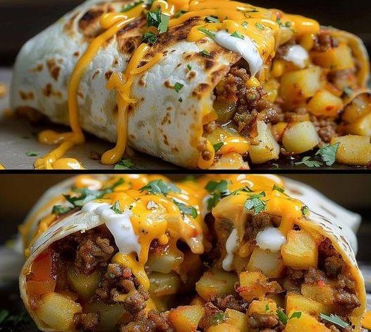 Enjoy your delicious and unique cheesy potato and beef burritos!