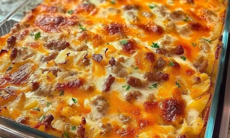 If you’re looking for the perfect way to start the day—or impress a brunch crowd—this Cheesy Sausage Breakfast Casserole is your answer. Packed with savory breakfast sausage, crispy bacon, shredded hash browns, and gooey cheddar cheese, it’s baked to golden perfection and loaded with flavor in every bite. Whether you’re serving it for a holiday morning, a weekend family breakfast, or prepping meals ahead, this casserole is hearty, comforting, and completely satisfying.