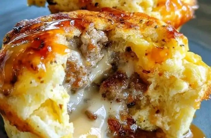 Cheesy sausage-stuffed biscuits with gravy are a delightful combination of flavors and textures—flaky on the outside, savory and creamy on the inside, and finished with a smooth gravy that ties everything together. Whether served at a family breakfast, weekend brunch, or even a special holiday morning, this dish will quickly become a tradition. It is hearty, comforting, and guaranteed to put smiles on everyone’s faces.