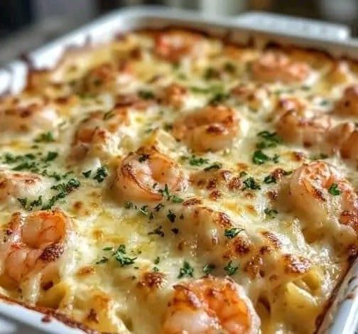 This shrimp and pasta casserole is the perfect dish for a comforting dinner that feels indulgent and satisfying. The creamy sauce, combined with the perfectly cooked shrimp and a cheesy topping, makes for a flavorful meal that’s sure to impress family or guests. Enjoy with a side of garlic bread or a simple green salad for a complete feast.