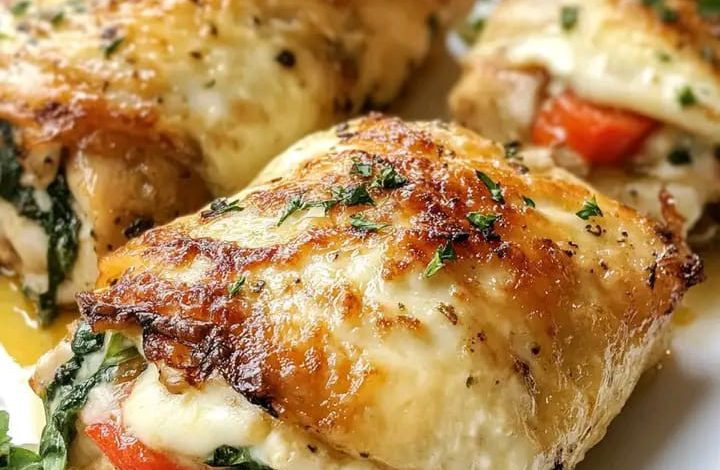 Looking to elevate your dinner game? These Cheesy Spinach & Pepper Stuffed Chicken Breasts are everything you love in one bite—juicy, perfectly seasoned chicken loaded with sautéed spinach, roasted red peppers, and melty cheese. With a golden crust and irresistible gooey center, this recipe is as impressive as it is comforting. Whether for a special occasion or a weekday upgrade, this dish is a guaranteed crowd-pleaser.