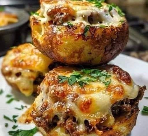 - Stuff the potato skins: Fill each potato skin with the prepared meat mixture, pressing it down gently to fill the shell. Top each filled potato skin generously with shredded mozzarella (or your preferred cheese blend).