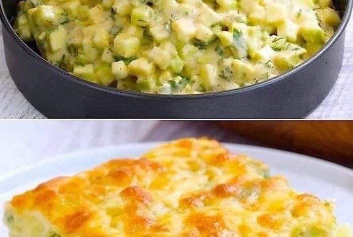• Pour the mixture into a greased 9×13-inch baking dish, spreading it out evenly.