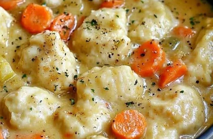 - Using a spoon, drop small portions of the dough into the simmering stew. Cover the pot with a lid and let the dumplings cook for about 10–12 minutes. Avoid removing the lid to ensure the dumplings steam properly.