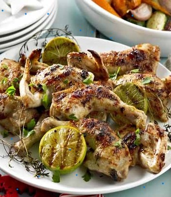 Chilli Garlic Spatchcock With Barbequed Lime And Roasted Vegetable Salad