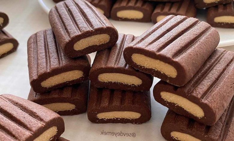 • Trim the edges to create an even rectangle. Cut the dough into strips, then cut each strip into smaller pieces to form cookies.