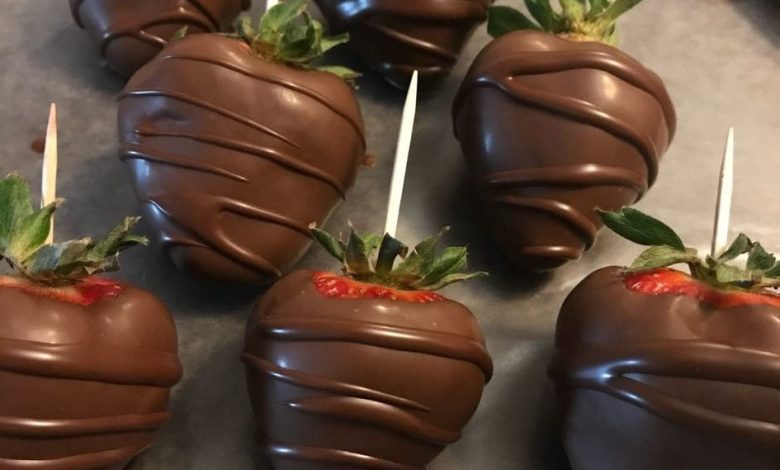 Line a large baking tray with baking paper. Rinse the strawberries and pat dry with paper towels.In a small microwave-safe bowl, microwave the chocolate chips and coconut oil in 30-second intervals, stirring in between, until completely melted.