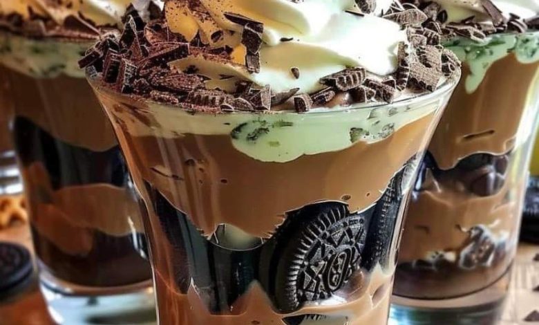 • In serving glasses, start by adding a layer of crushed Oreos at the bottom.