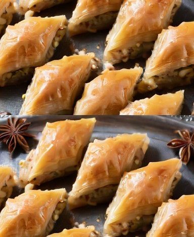10.Once the baklava comes out of the oven and is still hot, pour the syrup evenly over it. Let it soak uncovered and at room temperature for several hours.