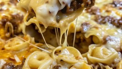 • In a large skillet over medium heat, cook the ground beef, onion, and garlic until well browned. Drain any excess fat.