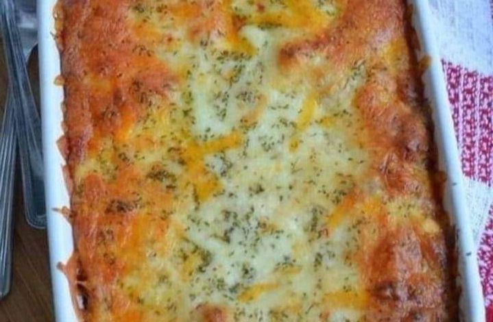 - In a 9×13 inch baking dish, spread a thin layer of meat sauce on the bottom.