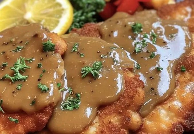 Conclusion: This Classic Wiener Schnitzel with Gravy is a dish that effortlessly combines simplicity with elegance. Whether it’s a weeknight dinner or a special occasion, it promises to satisfy with its delightful crunch and creamy gravy. Enjoy this taste of Austrian tradition with a side of roasted potatoes or a light salad for a complete meal.