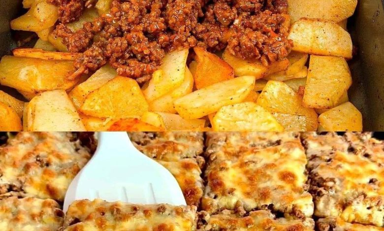 Place the fried potatoes in the pan and season with crushed red pepper, salt and pepper. Mix well to combine.