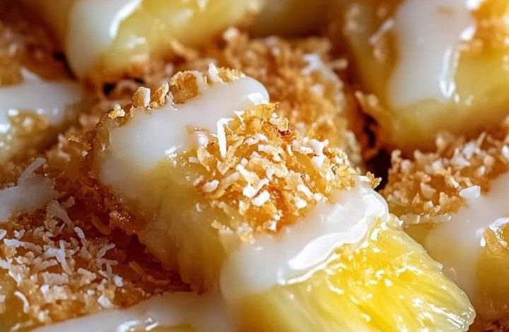 Tropical desserts can bring a piece of paradise right to your dining table, and this Coconut-Crusted Pineapple with Creamy Vanilla Sauce is a perfect example. This dessert offers a delightful mix of textures and flavors, featuring juicy pineapple slices enveloped in a crispy coconut crust and drizzled with a smooth vanilla sauce. It’s a simple yet exotic treat that’s ideal for ending any meal on a high note.