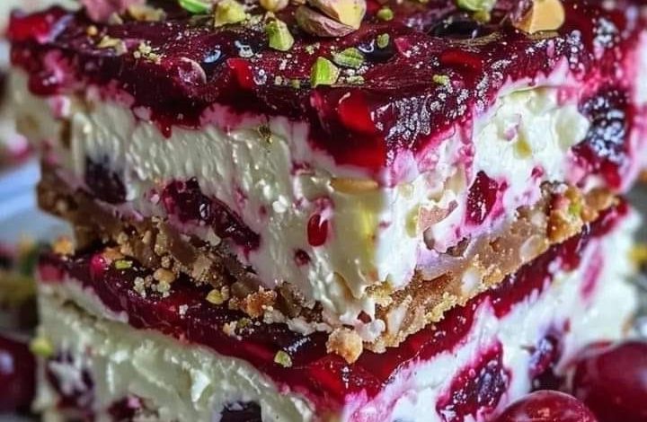 - Garnish: Sprinkle the chopped pistachios over the cranberry topping for added crunch and flavor.