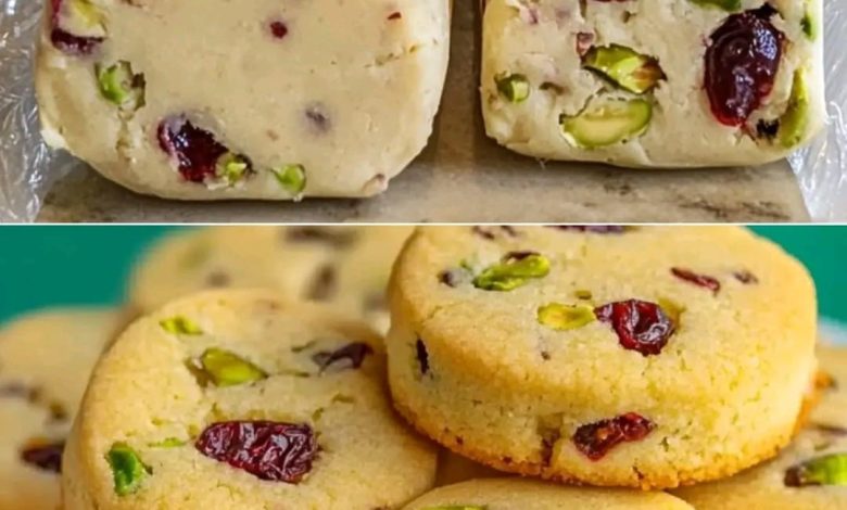 Cranberry Pistachio Shortbread Cookies – Buttery, Festive & Slice-and-Bake Perfection