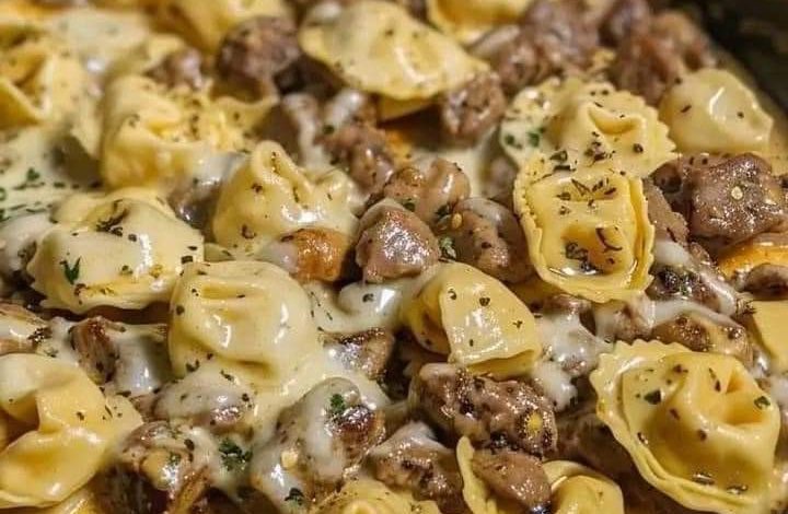 - Add the tortellini to the skillet. Simmer for about 5 minutes or according to the package instructions until the tortellini are tender and cooked through.